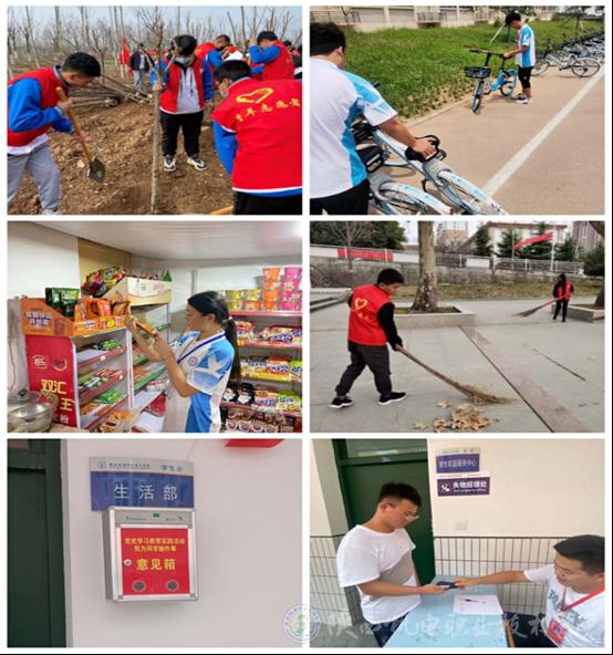 学校团委通过校园广播唱红歌、设置学生意见箱、设立失物招领处、校园环境卫生协查等措施,引导广大团学干部为学生办实事办好事,弘扬心系师生、服务师生的优良传统和乐于助人、关心集体的优良作风,团学干部和广大青年学生的“主人翁”意识和奉献服务精神显著增强。