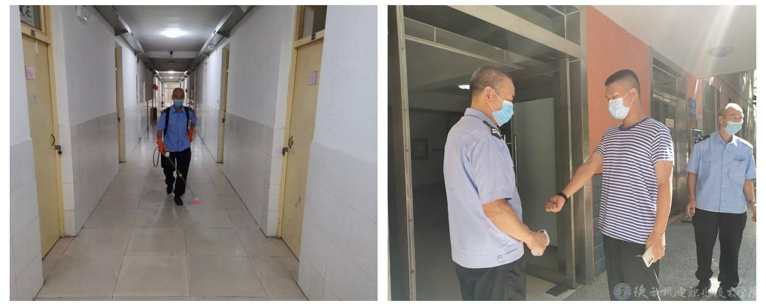 按照防控要求,工作人员定时对公寓楼各楼层的公共区域、地面空间、门窗把手、楼梯扶手等进行清洁消毒,消毒完成后,保持公共区域通风状态。凡入校同学进入校园后按照规定路线迅速前往公寓,公寓工作人员进行二次测温。