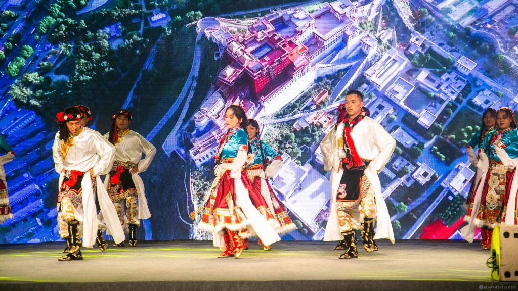 紧接着,热情奔放的藏族姑娘为大家带来了舞蹈《热巴鼓舞》和《缘定萨玛志》,展现了藏族同胞的独特魅力。