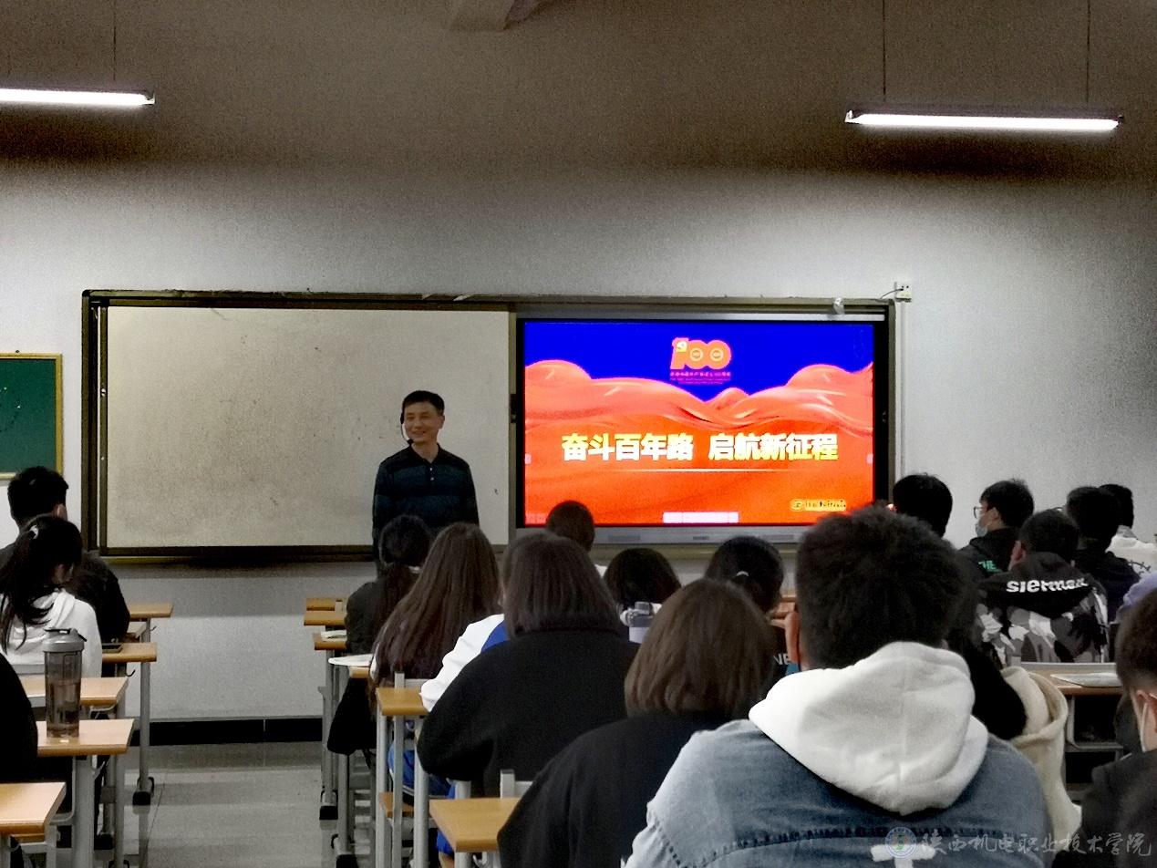 10月21日下午,副院长张新堂在博学楼416教室,为21网络技术1、2和21大数据合班80余名学生上形势与政策课,讲授《奋斗百年路,启航新征程》专题内容。