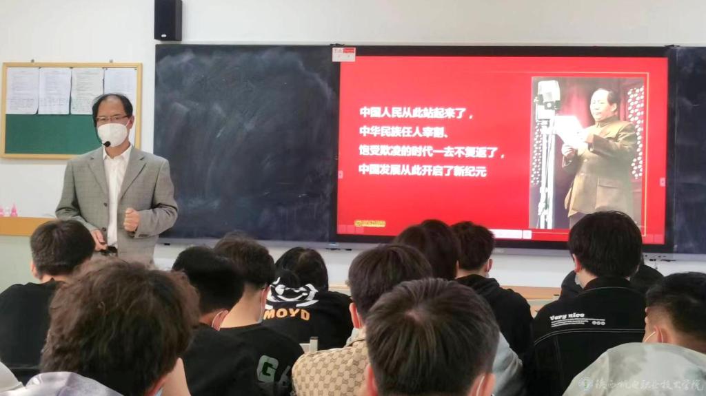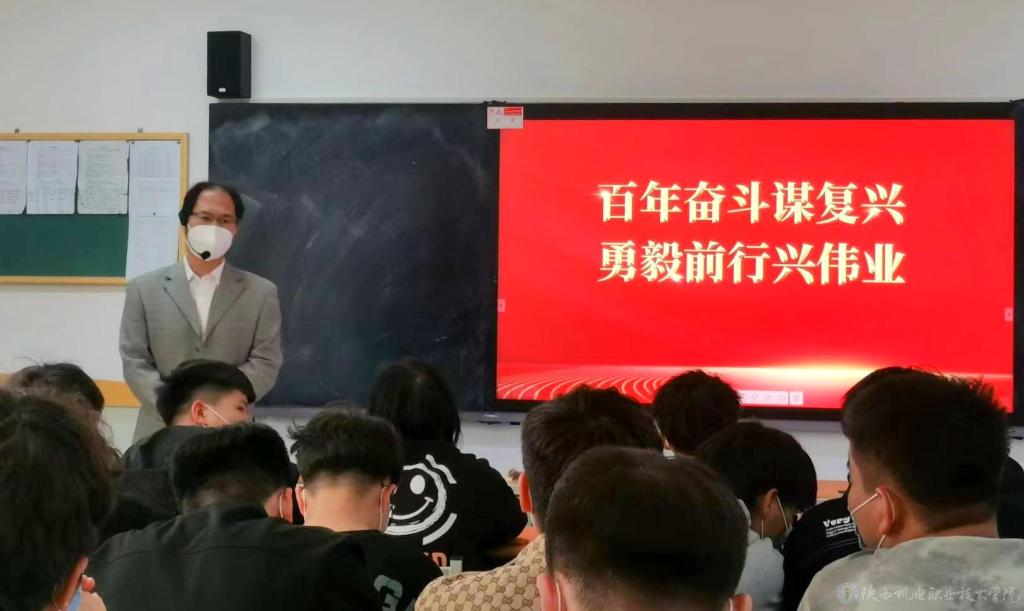 4月6日下午5-6节课,校党委书记伊逊智在博学楼315教室为18机电五年1、20工业机器人、20机电技术3合班共60余名学生上形势与政策课,讲授《百年奋斗谋复兴,勇毅前行兴伟业》专题内容。
