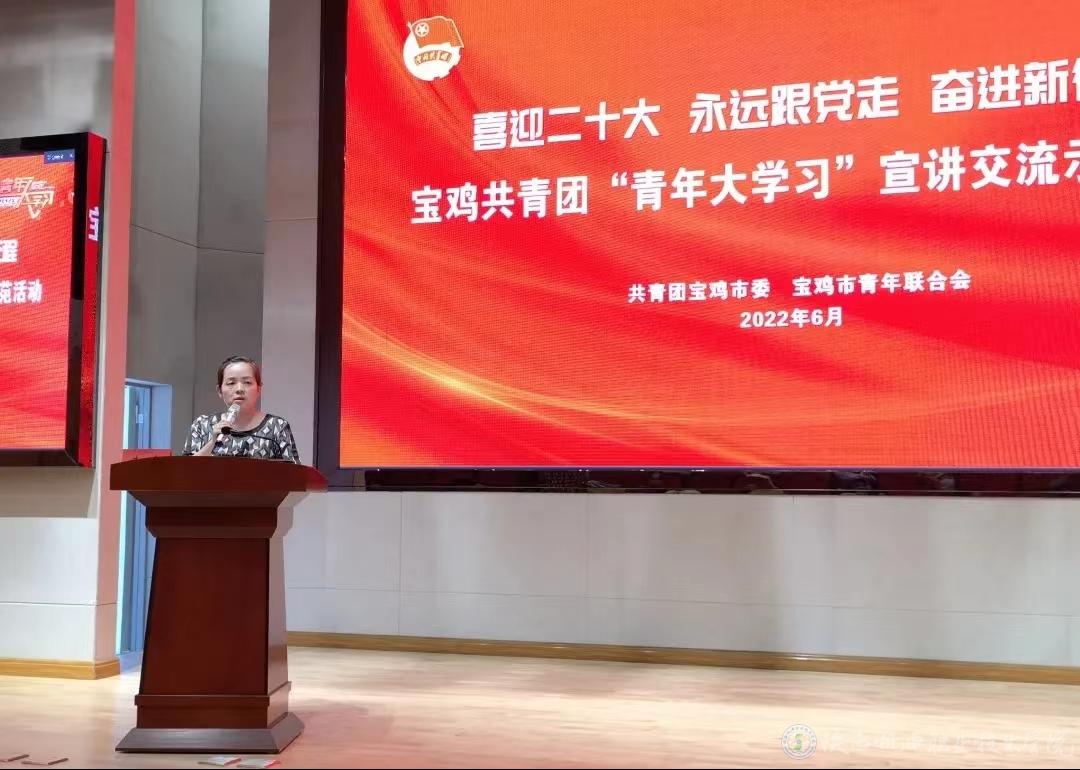 为深入学习贯彻习近平总书记在庆祝中国共产主义青年团成立100周年大会上的重要讲话精神,贯彻落实省、市党代会精神,引导广大青少年更加紧密地团结在以习近平同志为核心的党中央周围,奋进新时代,建功新征程。6月13日,团市委、市青联主办的“喜迎二十大、永远跟党走、奋进新征程”宝鸡共青团“青年大学习”宣讲交流示范活动在市青少年宫举行。