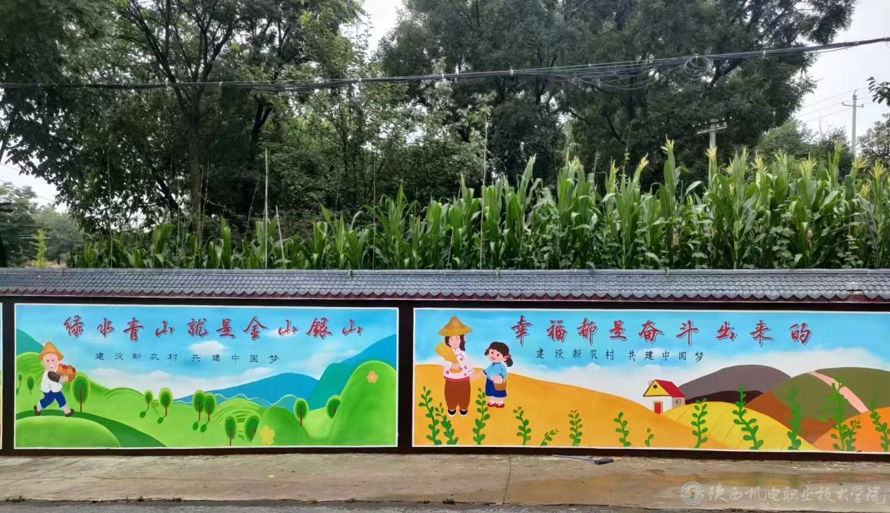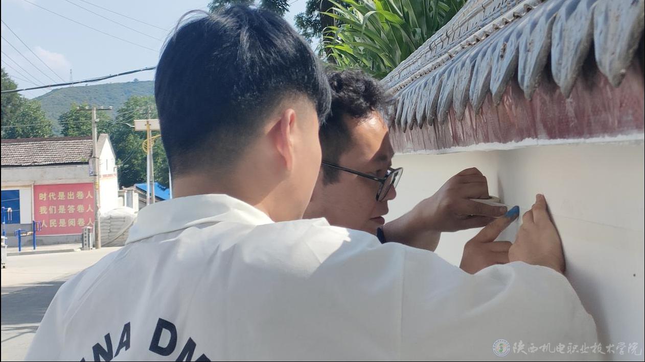 经管与艺术学院的志愿者们传承新时代精神,用墙绘来美化村容村貌,宣传乡村文化特色,展现先进乡村的建设风貌、时代精神与历史底蕴。志愿者们不惧酷暑,认真图画,对乡村环境的改造与乡风文明建设都有极大帮助。