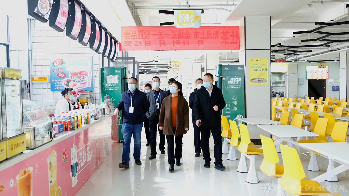 在学校蟠龙校区东门疫情检查站,向纪明对全校目前静态管理工作做了简要汇报,随后赵玲丽一行前往蟠龙校区生活区检查指导疫情防控、物资保障等工作,强调校园食品卫生,餐饮人员必须严格按照食品加工操作流程规范进行,最后检查了宿舍区疫情隔离观测点,对我校疫情防控工作表示高度认可,要求每日核酸要做到“应检尽检,不漏一人”,防疫物资保障到位,要持续加强校园安全工作,做好学生心理健康辅导工作。