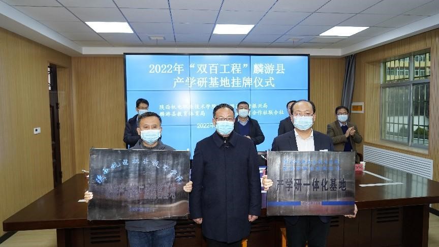 11月11日上午,买球赛的app官网“双百工程”产学研一体化教育基地和农特产品推广及销售基地挂牌仪式在麟游县职教中心举行。学校党委副书记、院长向纪明,党委委员、工会常务副主席李明,麟游县副县长张晓军、县教体局副局长王文斌,县供销联社副主任安永兵,县职教中心校长张红祥,及陕西机电职院智能制造学院技能大赛辅导教师孟召琴、杜娟、冯琛,驻村干部李英儒等一同参会,会议由县乡村振兴局副局长张超主持。