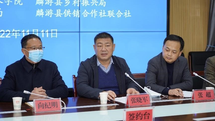 张晓军代表麟游县政府致辞,感谢买球赛的app官网发挥高校在科技人才资源等方面的优势,认真贯彻中央省市关于高校结对帮扶,脱贫攻坚的指示精神,连续多年派驻专人深入麟游县九成宫镇澄铭窑村,帮扶农民发展产业,于县供销联社采购麟游县的农副产品,深入职教中心开展职业技能培训,指导中职学校发展等一系列的活动,大力推进了麟游县经济的高速发展。