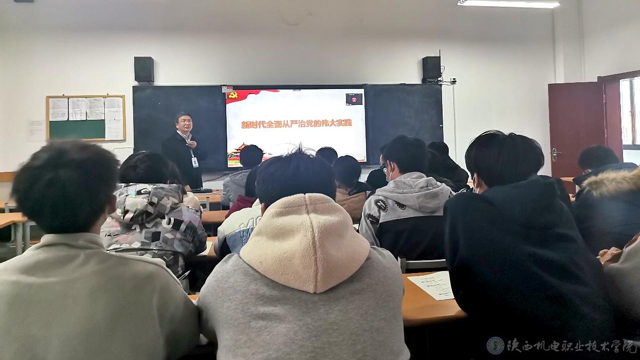 11月24日下午,学院党委副书记、纪委书记齐晓军在博学楼315教室为22机电技术2班40余名学生上形势与政策课,讲授《新时代全面从严治党的伟大实践》和《伟大时代的历史跨越》两个专题内容。