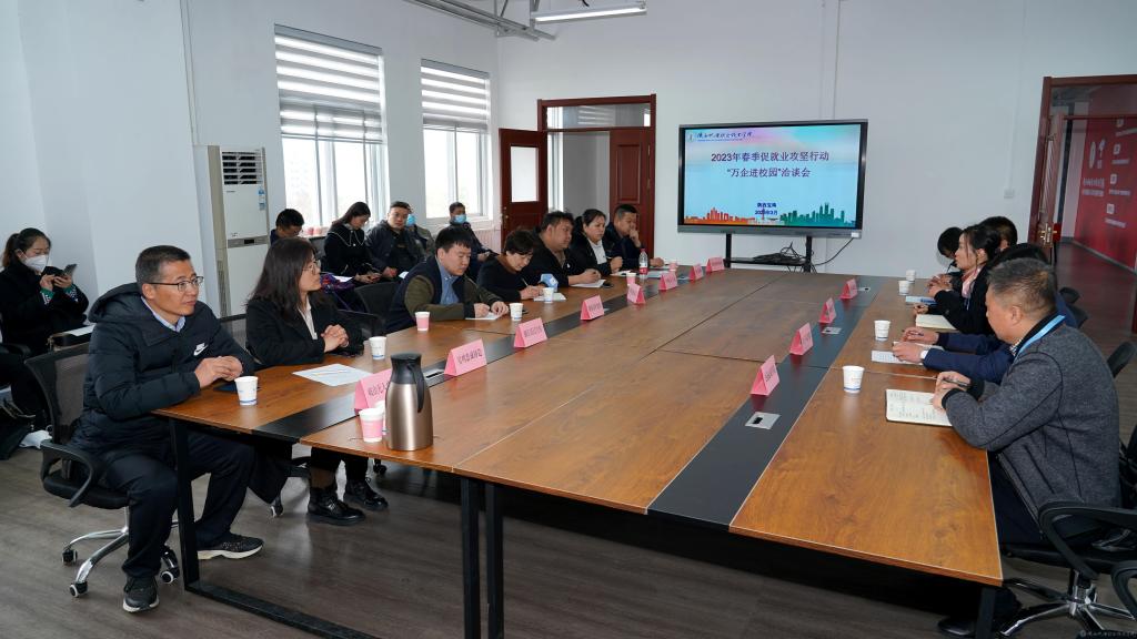 交通运输学院院长李靖、电子与信息学院党支部书记高赋、智能制造学院党支部书记薛媛丽、招生就业处副处长田正本等陪同用人单位代表进行座谈。