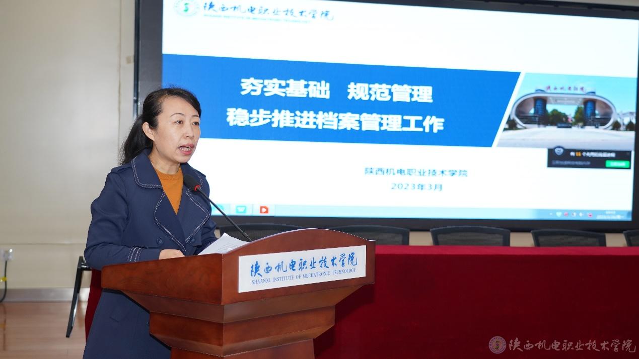 党政办公室主任、档案室主任康健从“学校基本情况”“档案工作基本情况”“档案基础保障工作”“档案业务建设工作”“档案信息化建设工作”“档案工作方向”等六个方面进行了专题汇报。