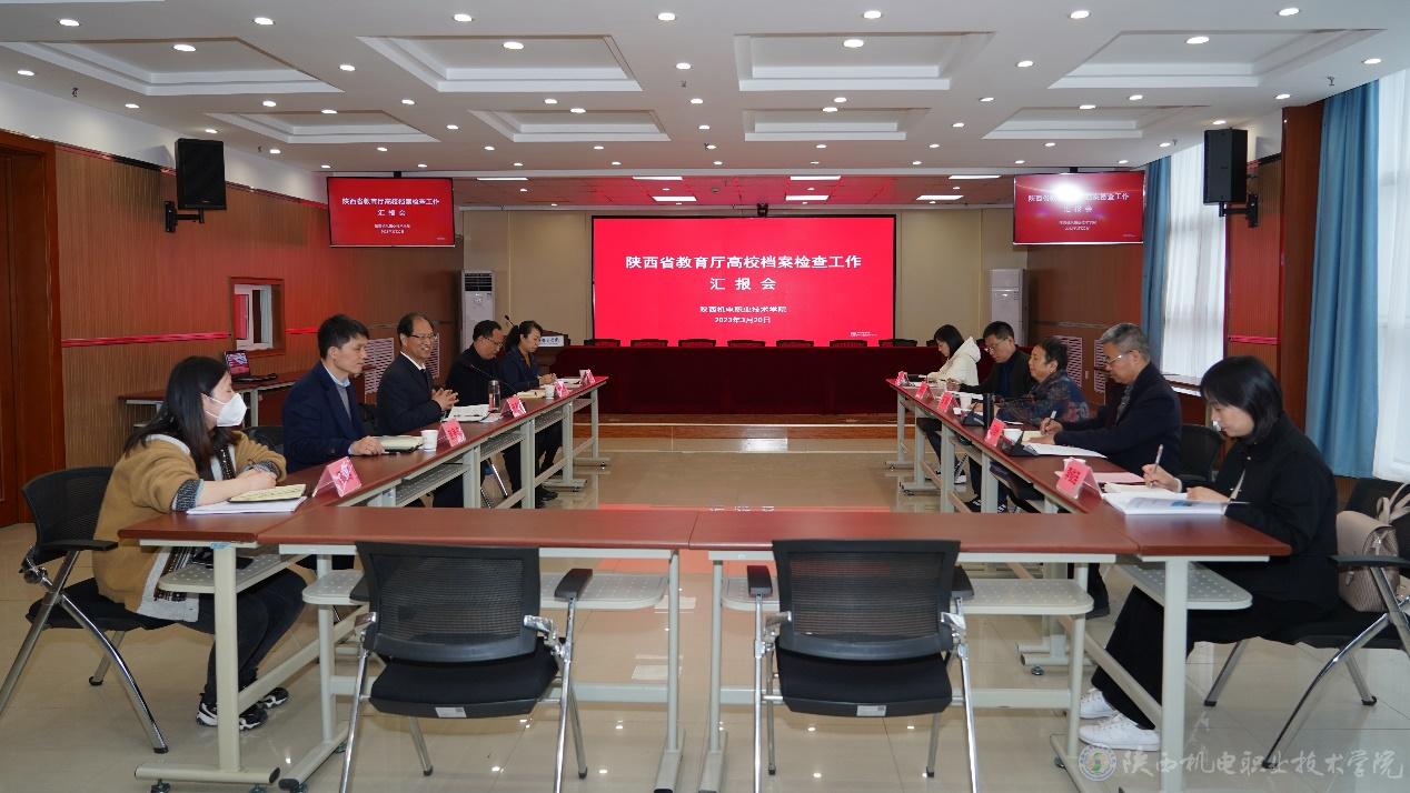 3月20日,陕西省高校档案检查工作领导小组副组长、省教育厅办公室调研员、省高教系统档案学会副理事长王瑛,西北大学档案馆馆长王旭洲,西安财经大学档案馆馆长崔军定,西安欧亚学院档案室主任李俊连、西京学院档案馆馆长马燕等莅临我校进行档案工作专项检查,党委书记伊逊智,党委副书记、院长向纪明,党委委员、院长助理赵争东,党政办主任、档案室主任康健,档案室干事闫瑶瑶参加档案工作汇报会。