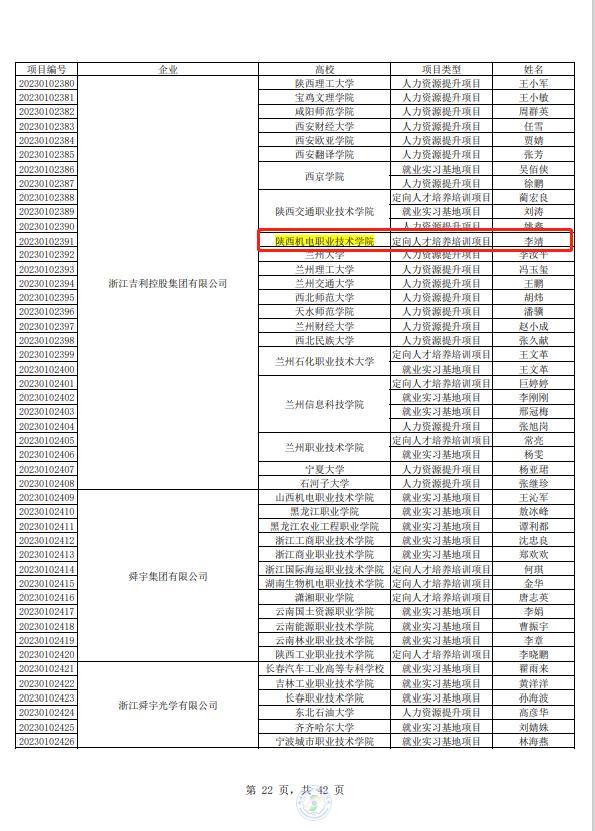 4月6日,教育部高校学生司印发了《关于公布第二期供需对接就业育人项目立项名单的通知》(教学司函〔2023〕6号)。其中,我校与浙江吉利控股集团有限公司、杭州海康威视数字技术股份有限公司、广联达科技股份有限公司等3家企业的定向人才培养培训项目获批。这是我校首次参加并获批教育部供需对接就业育人项目,也是我校高度重视产教融合、校企合作的重要成果。