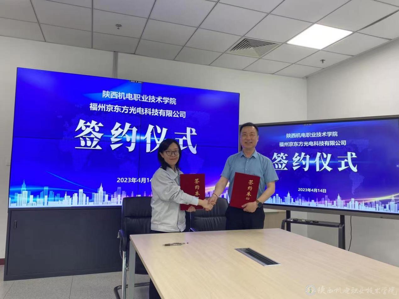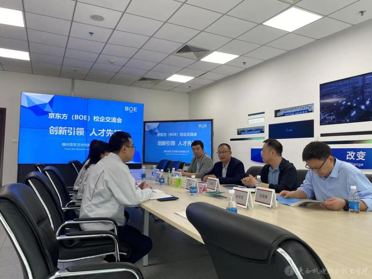 福州京东方光电科技有限公司人力资源部长罗越、人力资源经理华荣热情接待了我校考察团。带领我校一行先后参观了生产车间、产品展示厅、员工宿舍等区域。随后双方进行了座谈,就学生实习就业岗位、工作内容、工作时间、福利待遇等方面深入交流,达成诸多共识,最终签署了校企合作协议。