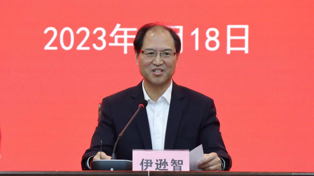 学校党委书记伊逊智代表学校党政领导班子表达了对省委教育工委的感谢和对陈红梅同志的热烈欢迎。