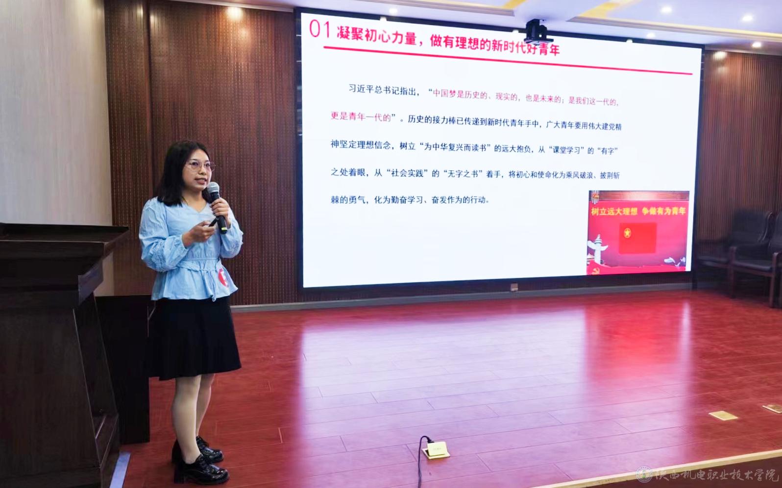 团总支书记组和专职团干部组邀请党委委员、宣传部部长李明,经管与艺术学院党支部书记孟发军,基础部副部长满春燕,铁道工程学院副院长卢彦峰,校团委书记杨鹏担任评委,智能制造学院、电子与信息学院、铁道工程学院22级各班团支部书记兼班长作为观众代表到场学习交流。各位评委对本次大赛的举办工作和展现效果给予充分肯定,李明指出,本次大赛参赛教师讲授的内容丰富,选取紧跟时代主流,从时代楷模入手,展示了当代年轻教师良好的精神风貌。他希望教师团干部在思想上做学生的引领者,在生活上做学生的贴心人,系好学生“人生第一粒扣子”,把激发学生热情、引领学生思想作为核心意义,充分调动广大团员青年的责任心,为培养新时代高素质团员青年贡献青春智慧与师者力量。