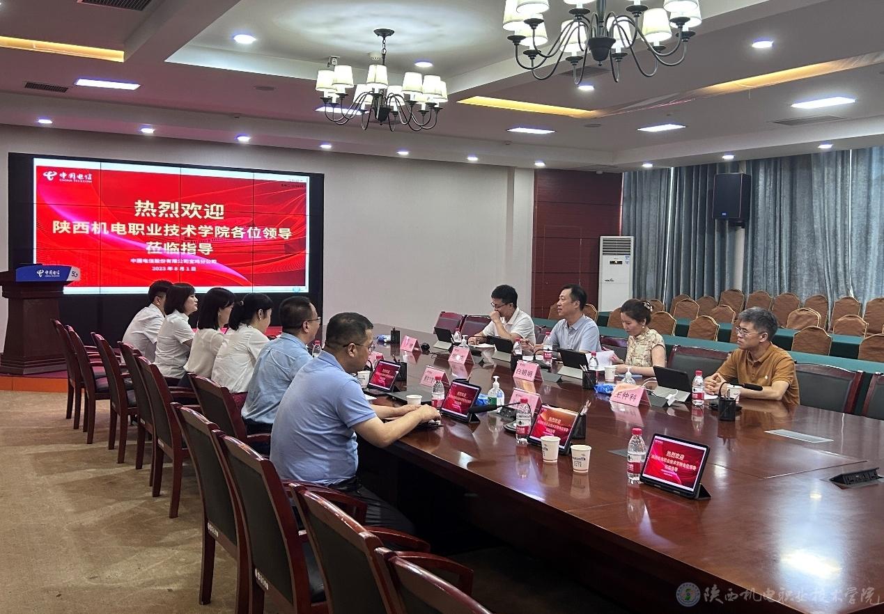 然后,在宝鸡电信会议室座谈。张克副院长代表学院对宝鸡电信一直以来支持学院信息化工作表示感谢,宋毛总经理给与会人员讲解学院网络融合改造项目方案,马莉副总经理代表宝鸡电信表示,愿意为学院的信息化转型提升提供支撑。双方就信息化建设服务、网络融合改造支撑、教育教学及校企合作等方面进行了友好深入的探讨,双方期待更加深入的合作。