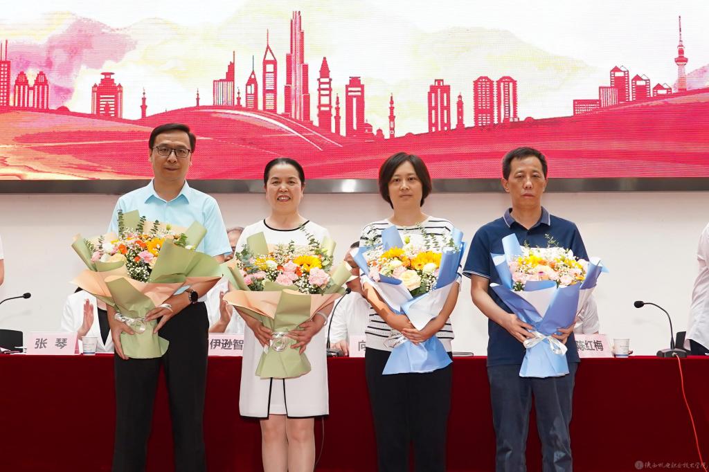 校领导为名师工作室和镇巴县职业中学“组团式”帮扶教师、麟游县乡村振兴驻村教师授予鲜花。
