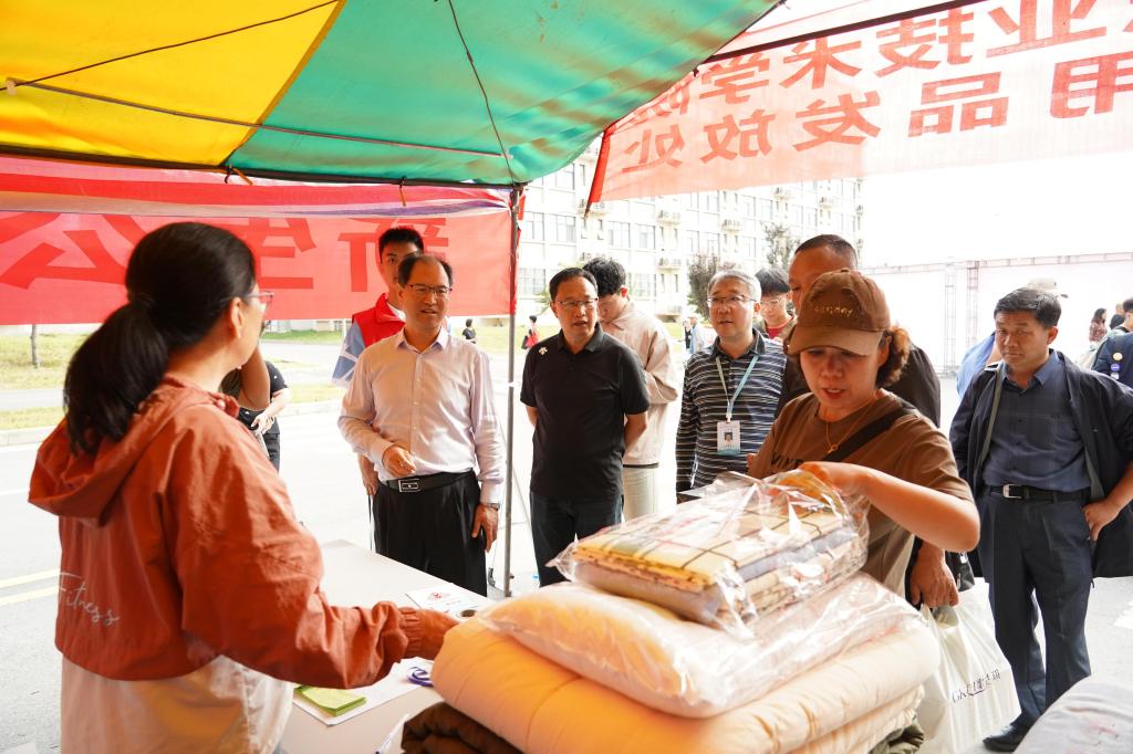 校领导检查新生被褥发放情况