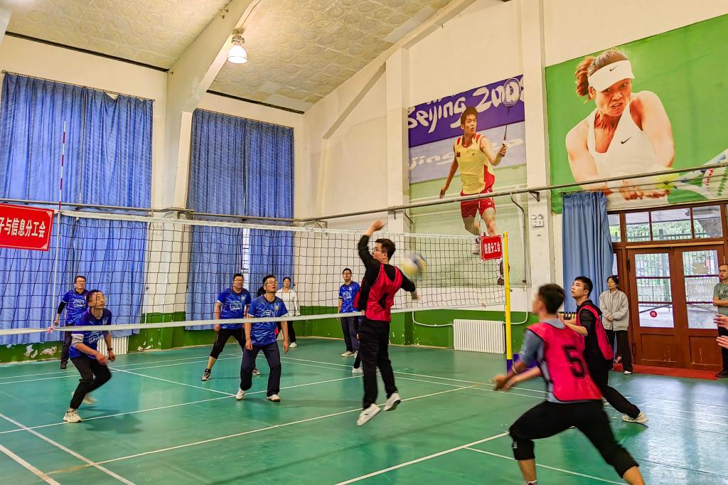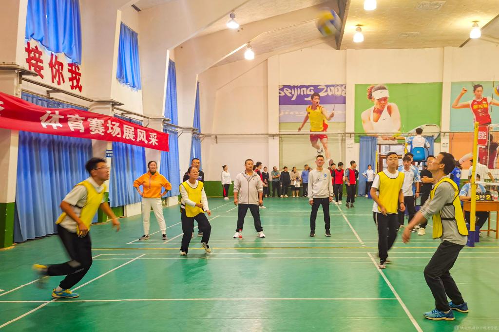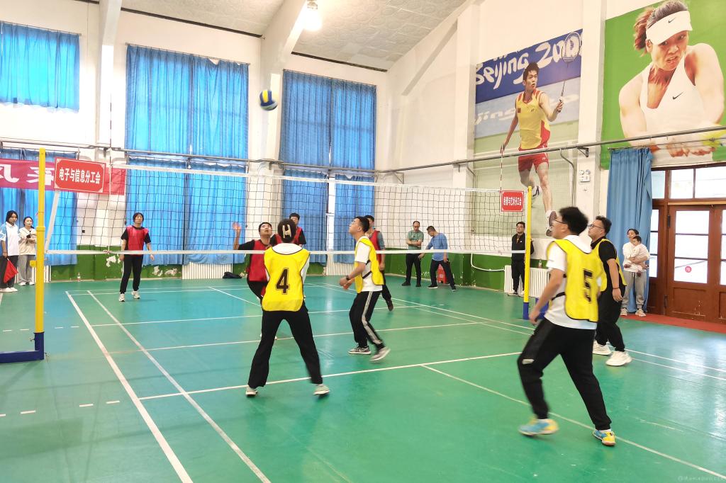 开幕式结束后进行了第三小组循环赛,比赛现场,教职工斗志昂扬,身姿矫健,配合默契,传球、垫球、扣球,用心打好每一个球,迎来一个又一个比赛的高潮。