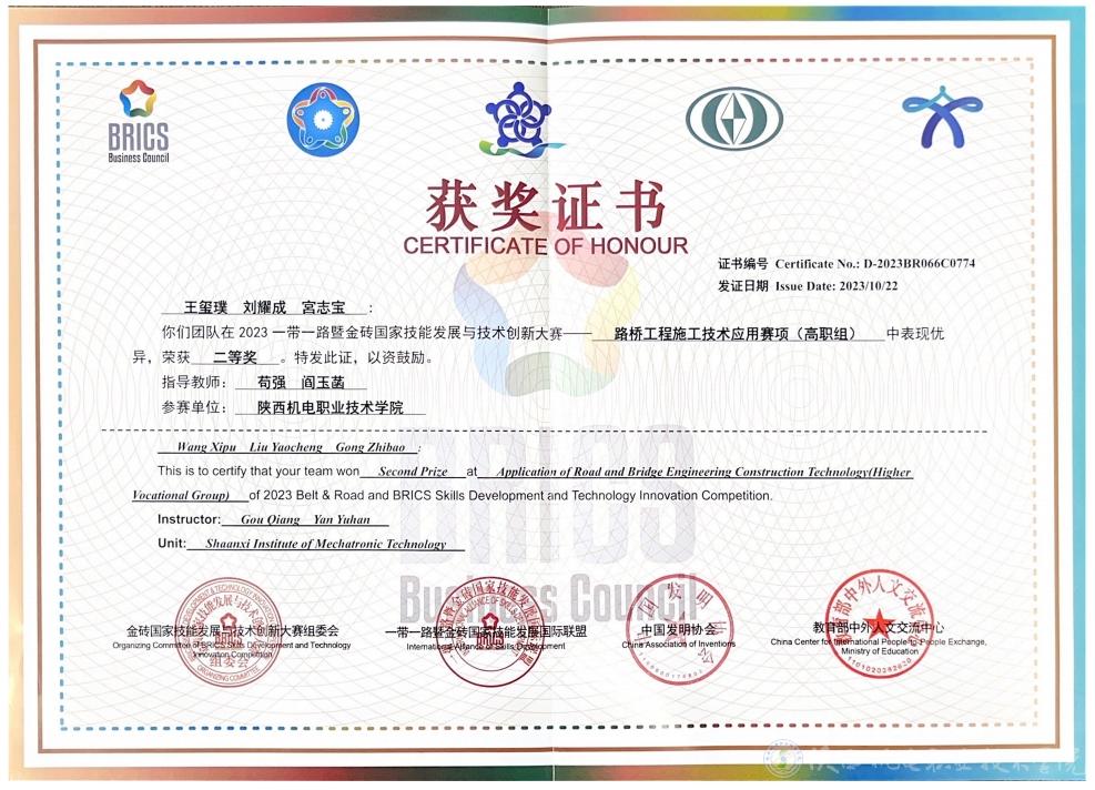 10月20—22日2023第七届一带一路暨金砖国家技能发展与技术创新大赛之路桥工程施工技术应用技能竞赛决赛在陕西交通职业技术学院成功举办。