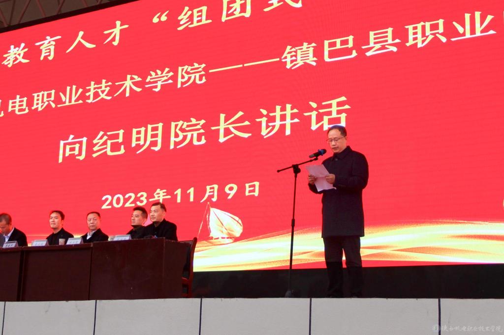 为深入学习贯彻落实习近平总书记重要讲话重要指示精神,落实中组部、教育部关于国家乡村振兴重点帮扶县教育人才“组团式”帮扶工作有关部署要求,11月9日,在学院党委副书记、院长向纪明的带领下,学院人事处处长姜有奇、后勤保障处王文忠、学生运动员刘胜苗、赵睿媛一行5人到镇巴县职业中学开展“组团式”教育帮扶捐赠活动。镇巴县教育体育局党组成员赵希文、镇巴县职业中学校长康晓平、镇巴乒协王主席参加捐赠仪式。捐赠仪式在镇巴县职业中学运动场举行,全体师生共同参与。