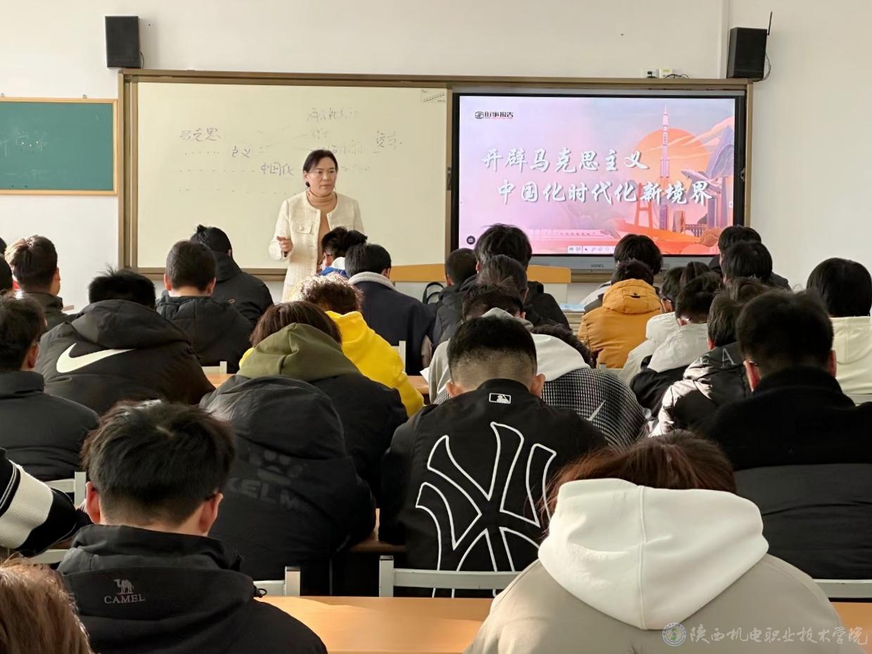 11月14日下午,学校党委副书记、纪委书记陈红梅在博学楼407教室为23建筑工程1、23建筑工程2、21建筑五年合班学生上形势与政策课,讲授《开辟马克思主义中国化时代化新境界》专题内容。
