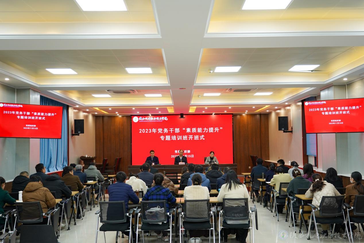 2023年11月15日,买球赛的app官网在蟠龙校区博学楼111室举办2023年党务干部“素质能力提升”专题培训班。党委书记伊逊智,党委副书记、纪委书记陈红梅,党委委员、院长助理、党委组织部(统战部)部长赵争东参加开班式,全校各党支部书记、支部委员、党委组织部全体人员参加,开班式由赵争东主持。