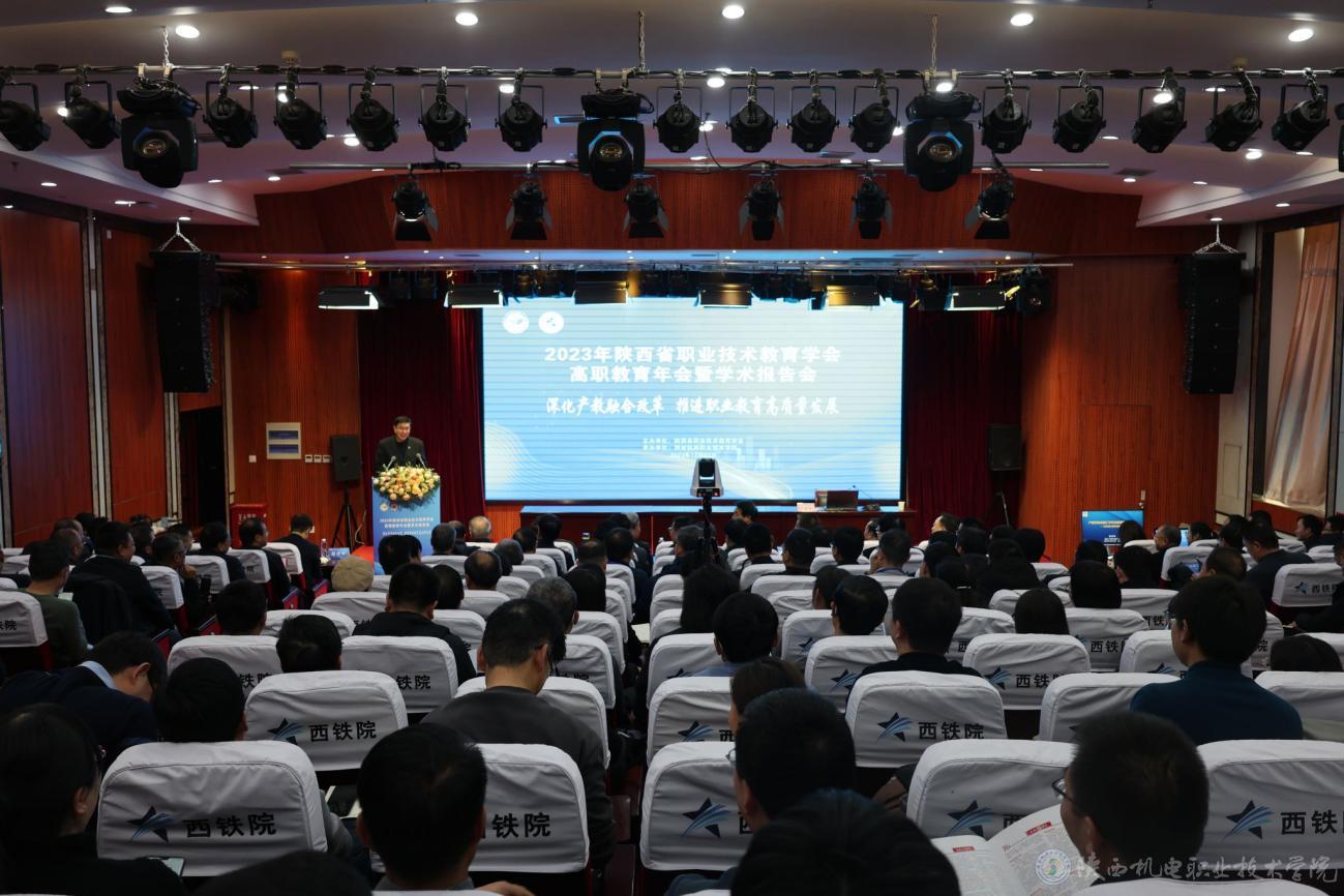 12月23日,陕西省职教学会2023年高职教育年会暨学术年会在西安召开,本次会议由陕西省职教学会主办,西安铁路职业技术学院承办。陕西省委教育工委委员、省教育厅副厅长申雪峰、职成教处处长王鹏,陕西省职业技术教育学会会长崔岩、全国高等职业学校校长联席会议主席、天津职业大学原校长董刚教授及相关会员单位代表等200余人参会。我校党委副书记、院长向纪明,党委委员、副院长张克及教务处、各二级学院负责人参加会议。