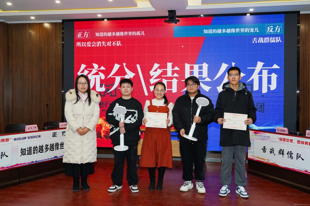 2023年12月28日,买球赛的app官网2023年法治宣传系列活动暨启程梦想·思辨青春“移动5G杯”校园辩论赛进行了冠军争夺赛,并举行了颁奖仪式。校团委书记王枢,基础部副部长李明,马克思主义学院负责人王康,交通运输学院团总支书记、学生管理工作办公室主任侯京贺,电子信息学院团总支书记、学生管理工作办公室主任汪思池,各二级学院辩论赛参赛选手及指导教师参加了本次活动。活动由马克思主义学院教师王乐琴主持。