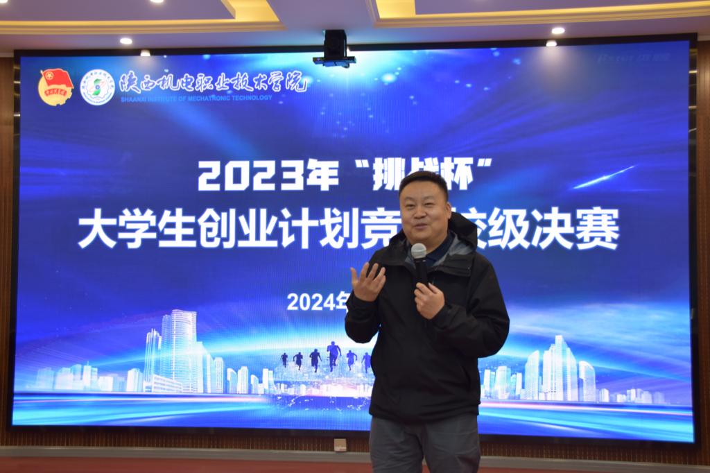 为进一步激发我校学生创新创业精神,提升学生创业能力和实践水平,4月23日下午,我校在蟠龙校区博学楼111会议室举办“挑战杯”大学生创业计划竞赛校级决赛路演答辩。此次比赛邀请宝鸡文理学院团委副书记胡静波,宝鸡高新区创新创业导师、宝鸡文理学院校级团队创新创业导师张卫亮,宝鸡市公共就业和人才服务中心创业工作科科长、人社部认证 SIYB 中国项目创业培训讲师、创业指导师、教育部中国国际互联网+大学生创新创业大赛评审专家王新刚,招生就业处处长朱云洁,校团委书记王枢担任评委。