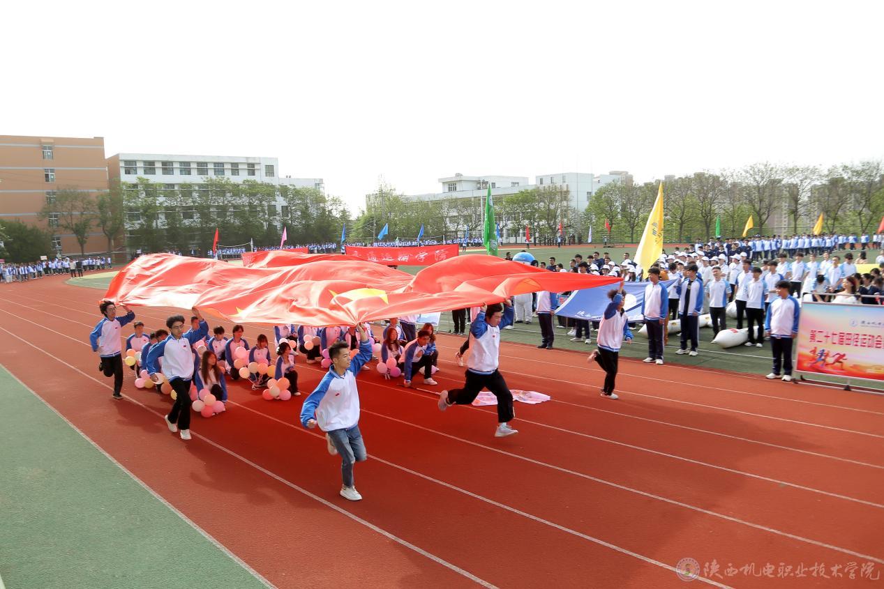 随着礼炮的点燃,第27届田径运动会在慷慨激昂的运动员进行曲中拉开帷幕。国旗方阵、院旗方阵、彩旗方阵、裁判员代表队、运动员代表队迈着矫健的步伐依次步入运动场接受检阅。