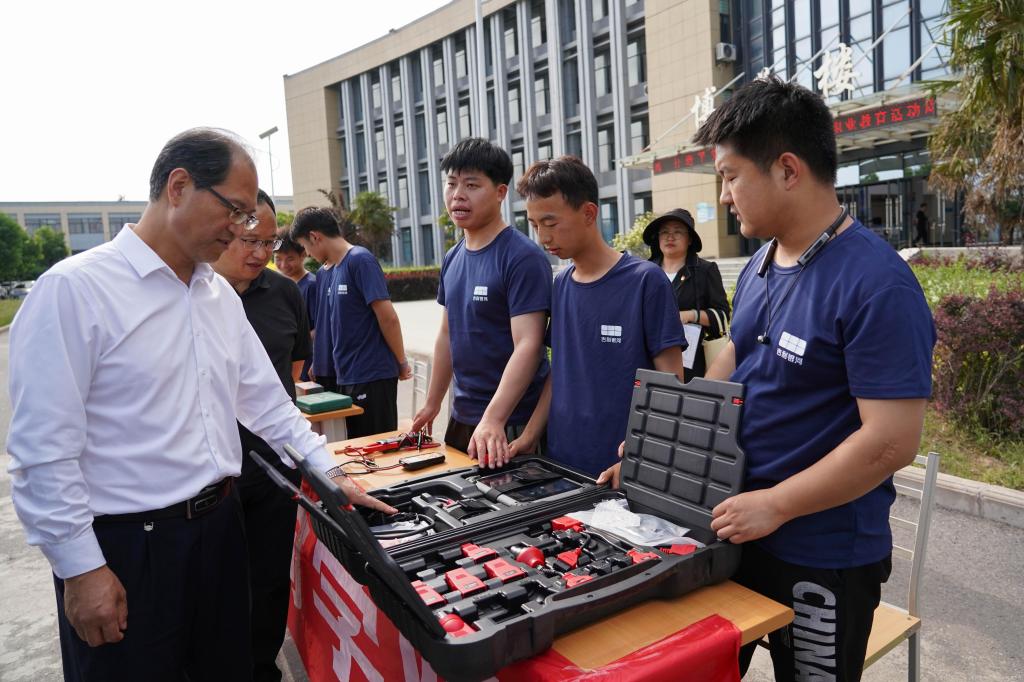 启动仪式结束后,党委委员、副院长张克和宝鸡擀面皮产业促进协会会长张新怀共同为擀面皮自动化生产设备研发中心揭牌。大家合影留念后,共同前往博学楼大厅、博学楼前广场、行知楼、强技楼等地参观了各教学单位职业教育成果展示。