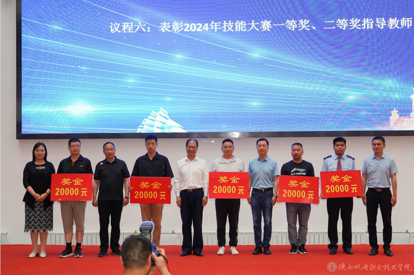 与会人员集中观看了我校第七届全国高校大学生讲思政课公开课展示活动高职组一等奖作品《传承红色基因 筑起铁路脊梁》,汲取了中国铁路追赶超越的非凡战绩和中国铁建人匠心独运、以身报国的精神风貌,坚定了听党话、跟党走的目标和信心。并对我校2024年陕西省职业院校技能大赛一等奖、二等奖获奖教师进行了表彰。