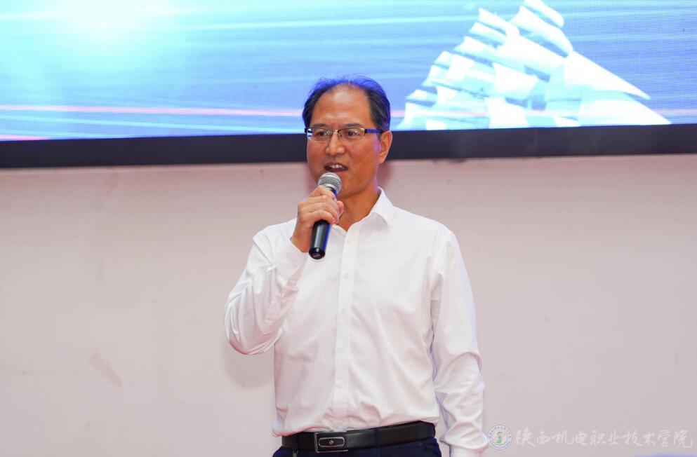 电子信息学院教师代表严军峰老师发言,他希望同学们能够“学一技之长立一生之本,以一技之长赢美好生活,用一技之长促建功立业”,并与同学们一起营造一技在手,一生无忧的良好社会氛围。