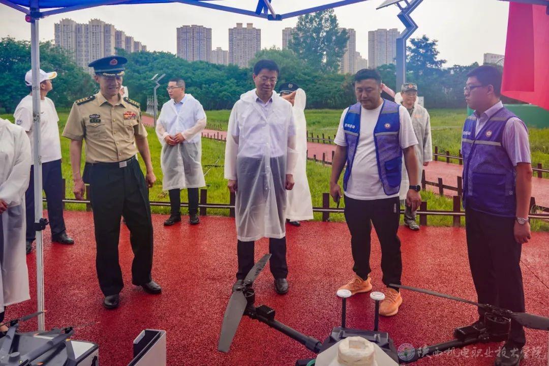 7月14日,宝鸡市人民防空警报试鸣活动在渭滨区渭河生态公园举行,活动为买球赛的app官网无人机产业学院组建的无人机专业保障队进行授旗。市委常委、副市长高宏真出席活动并讲话,我校无人机专业保障队师生代表30余人参加活动。