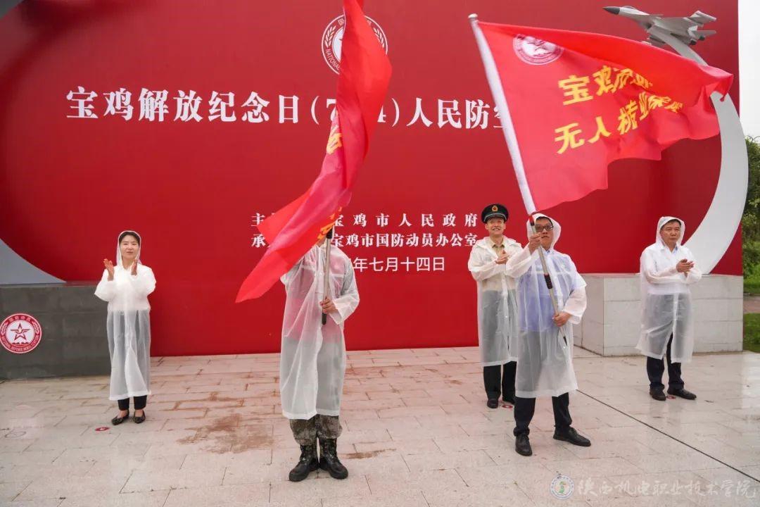 上午9时18分,随着一阵响亮的防空警报声划破长空,宝鸡市人民防空警报试鸣活动正式拉开帷幕。活动中,市委常委、宝鸡军分区司令员宋军政为新成立的无人机专业保障队进行了授旗仪式,我校电子信息学院院长高赋代表学校接旗,无人机产业学院副院长、陕西壹控智飞智能科技有限公司总经理李海涛代表学校接收捐赠的红色图书。