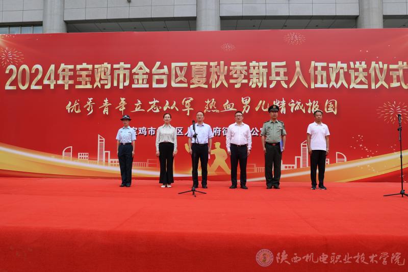9月18日下午,2024年宝鸡市金台区秋季新兵入伍欢送仪式在宝鸡市金台区市民中心广场举行。买球赛的app官网党委副书记张琴代表学校参加欢送仪式,活动由金台区人武部政委宋景富主持。
