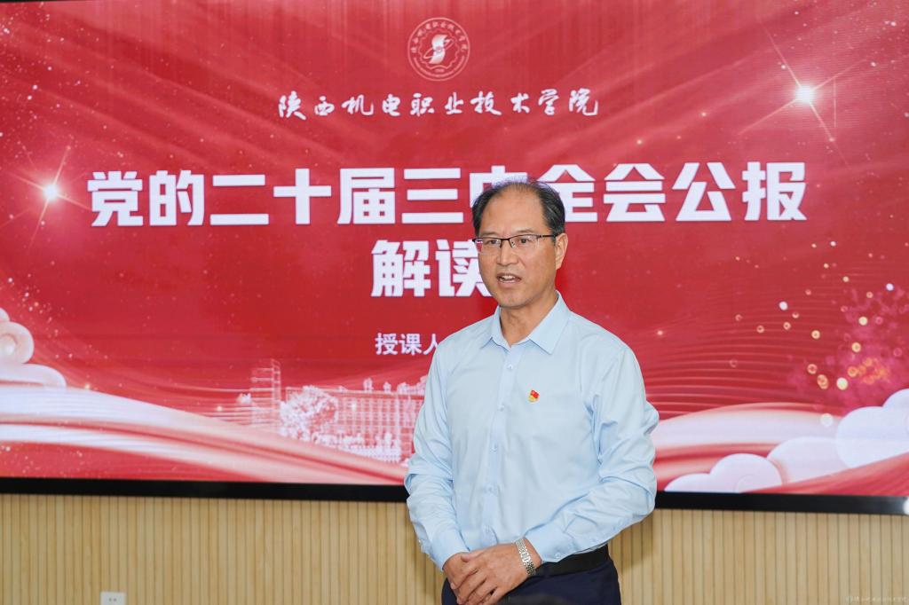 伊逊智强调,要把学习宣传贯彻党的二十届三中全会精神与学习贯彻党的二十大精神结合起来,与习近平总书记历次来陕考察重要讲话重要指示精神结合起来,与党纪学习教育结合起来,与落实立德树人根本任务结合起来,与学校中心工作结合起来,积极担当作为,把党的领导贯穿各项工作的全过程,为进一步全面深化改革、推进中国式现代化作出陕机电贡献。