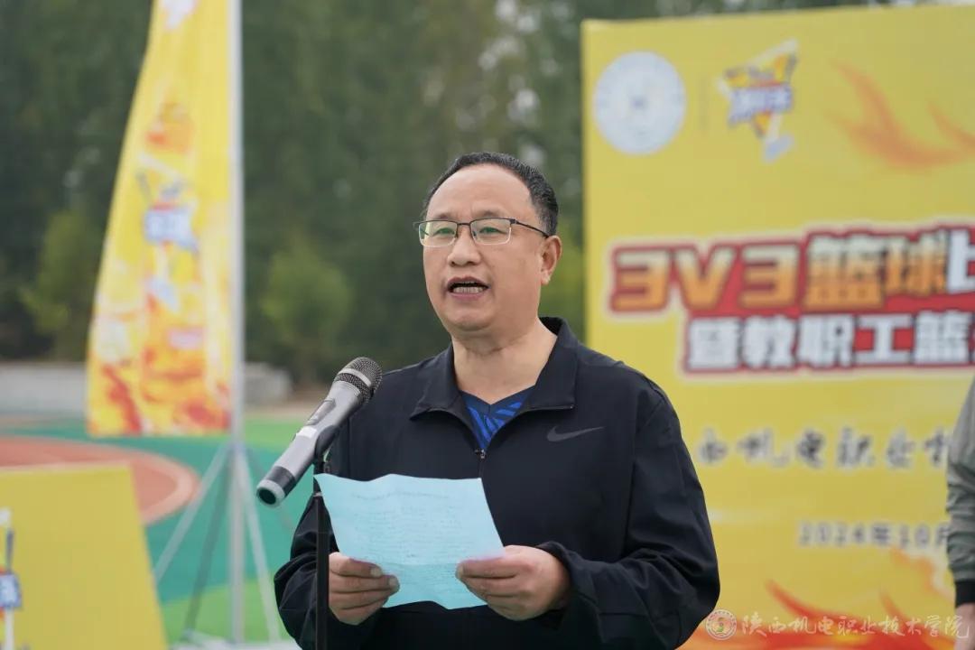 向纪明代表学校党政领导班子,向大家的积极参与表示最热烈的欢迎和最衷心的感谢。向纪明在讲话中指出,篮球比赛不仅是力量与速度的较量,更是智慧与团队精神的展现。他提出两点希望,一是希望全体教职工在比赛中发扬“友谊第一、比赛第二”的精神,尽情挥洒汗水,享受运动带来的快乐,赛出风格、赛出精彩、赛出友谊;二是希望通过此次比赛,激发全体教职工对体育运动的热爱,并将体育精神带到工作中去,树立热爱生活,健康锻炼的理念。并预祝此次教职工趣味篮球赛圆满成功。