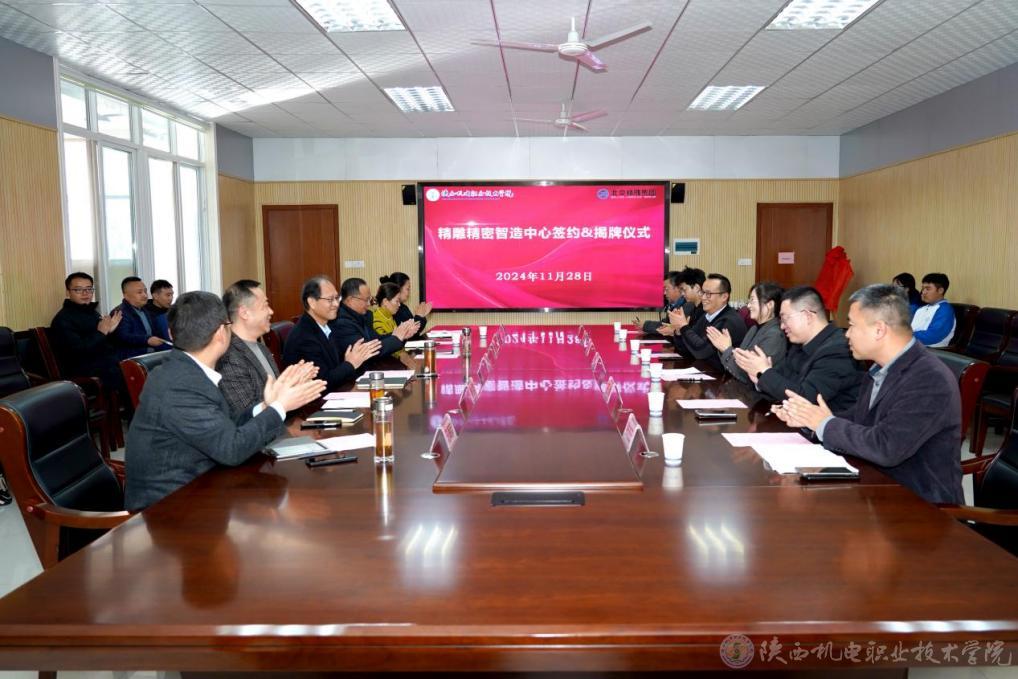 11月28日,陕机电精雕精密智造中心签约揭牌仪式在图书馆二楼会议室举行,北京精雕科技集团有限公司(以下简称“北京精雕公司”)行政总监李文华、北京精雕公司教育总监关山,买球赛的app官网党委书记伊逊智,党委副书记、院长向纪明等参加揭牌仪式。仪式由党委委员、副院长张克主持。