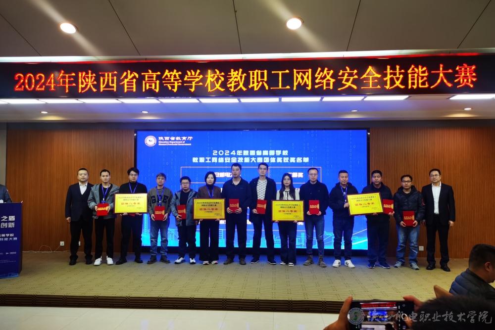11月29日,2024年首届陕西省高等学校教职工网络安全技能大赛决赛在西安邮电大学长安校区学术交流中心圆满举行。经过激烈角逐,由买球赛的app官网数据信息中心主任徐建领队,数据信息中心综合科科长王仲科,电子信息学院教师王轩、严军峰三位教师组成的队伍脱颖而出,荣获高职组第二名,斩获团体二等奖;王轩还荣获了个人竞赛三等奖的好成绩。