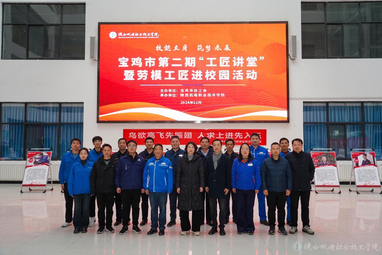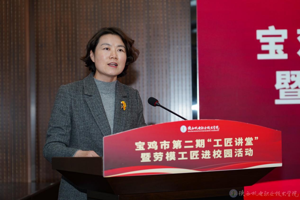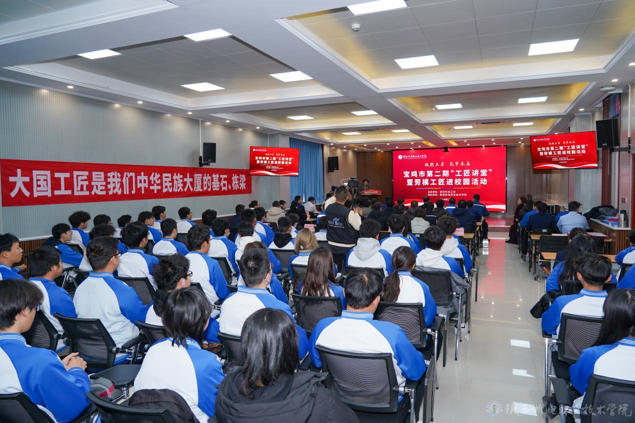 12月18日,宝鸡市第二期“工匠讲堂”暨劳模工匠进校园活动在买球赛的app官网举办。市级产业工会主席苟红兵,市教科文卫体工会主席王静,买球赛的app官网党委委员、副院长张克,教务处(校企合作处)处长白娟娟以及部分县区总工会主席、各职业院校工会主席、驻宝企事业单位工会主席、一线技术骨干共150余人出席活动。活动由市总工会党组成员、副主席杜萍主持。
