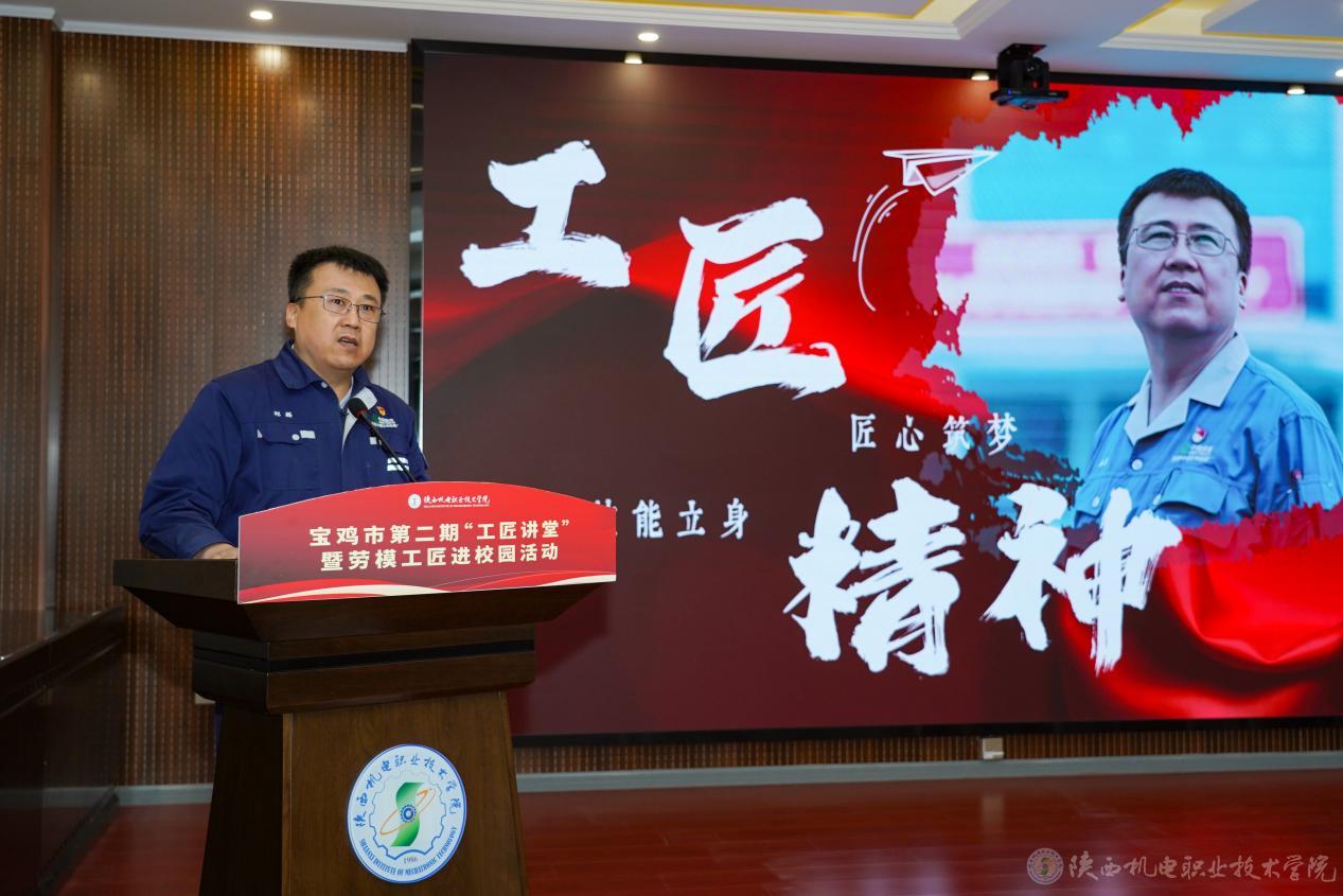 活动中,全国劳模、宝鸡卷烟厂高级技师、维修工祁磊作了“技能立身,匠心筑梦”的专题讲座,讲述了他在企业的成长经历,教导学生要刻苦钻研专业知识,练就过硬技能,成就美好未来。