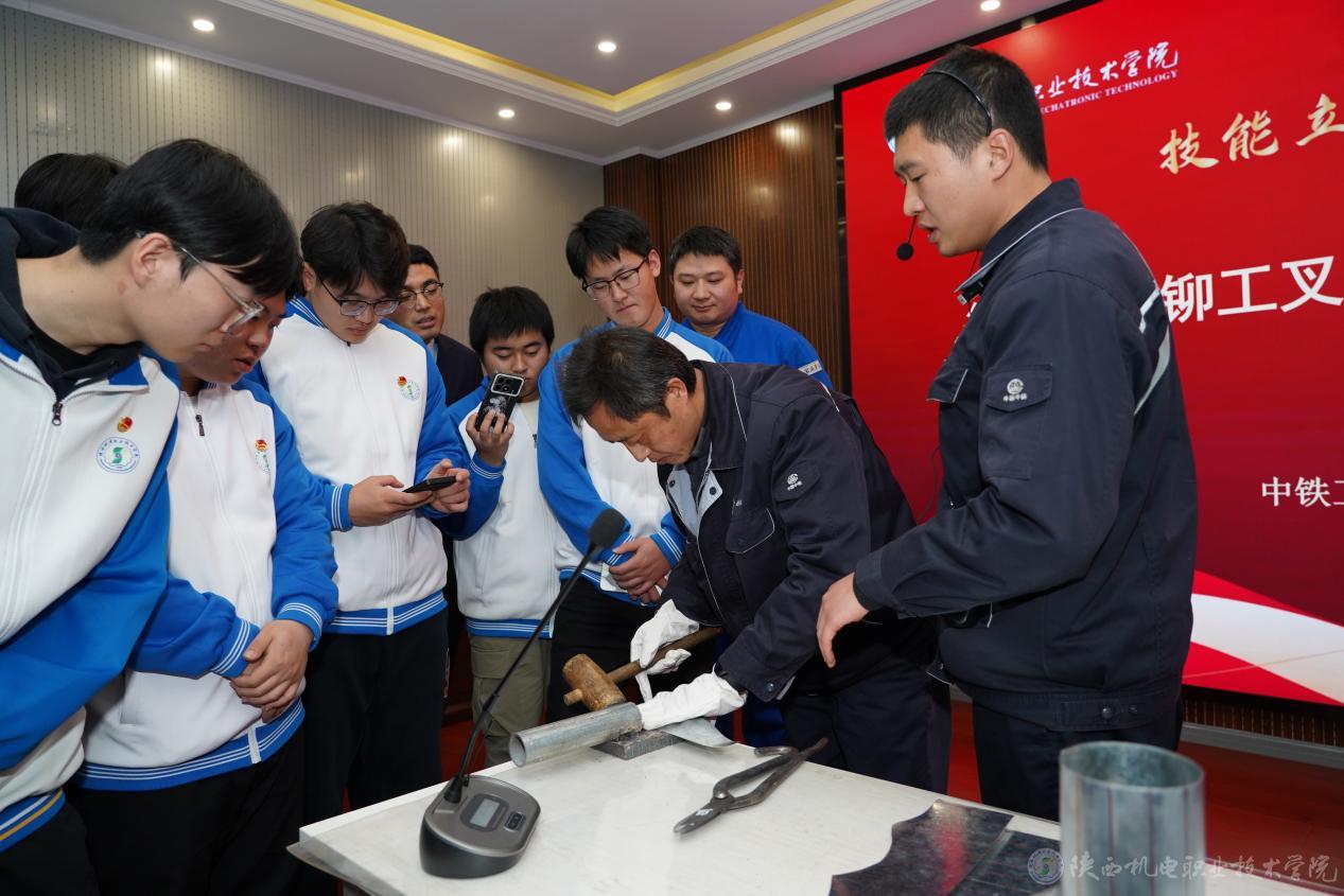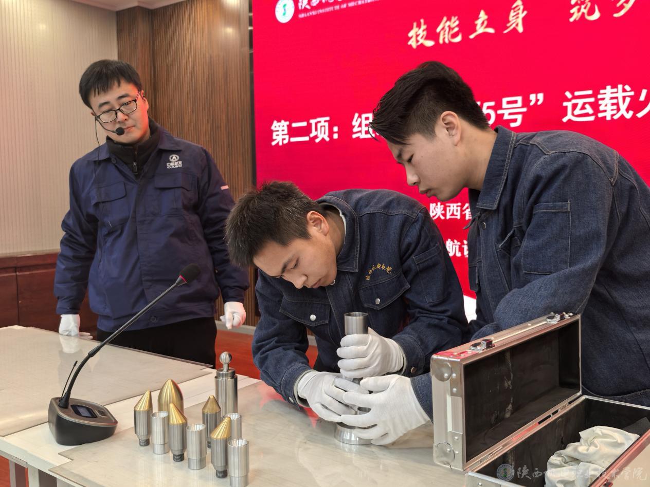 陕西省国防科技工业技术能手、陕西航天时代导航设备有限公司精密加工事业部高级技师毛国刚指导学生组装了大国重器“长征5号”运载火箭的模型;陕西省技术能手、中铁工匠宝桥集团高级技师陈盟团队展示了铆工叉形弯头管的制作过程。