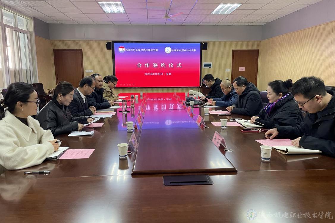 2月25日,买球赛的app官网与西北有色金属宝鸡创新研究院合作签约仪式在二楼会议室举行。西北有色金属宝鸡创新研究院院长赵永庆、副院长肖松涛,买球赛的app官网党委书记伊逊智,党委副书记、院长向纪明出席。签约仪式由校企合作处处长白娟娟主持。