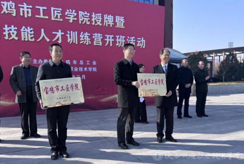 活动现场,宝鸡市委常委、副市长高宏真为买球赛的app官网和宝鸡职业技术学院授予“宝鸡市工匠学院”牌匾。省总工会职工技术创新协作中心主任贺娟讲话。