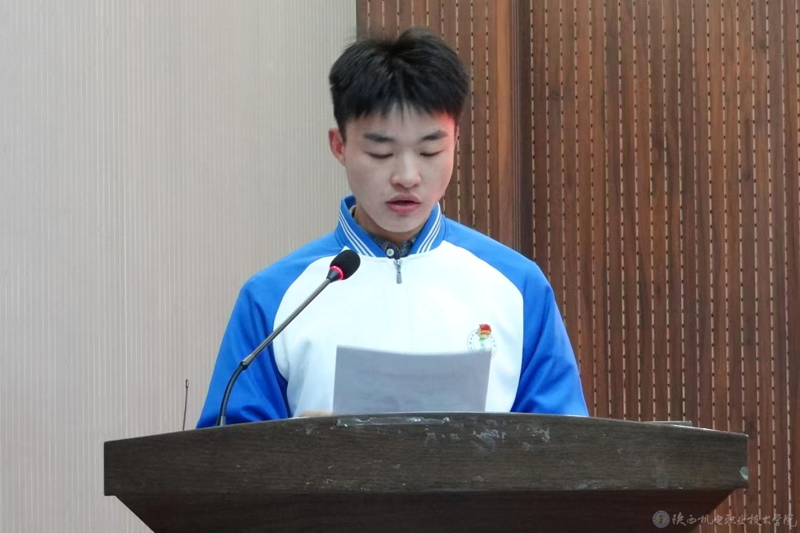 订单班学生代表侯显瑞作表态发言。他表示,要立志成为具有社会责任感、创新精神和实践能力的高素质技术技能型人才。