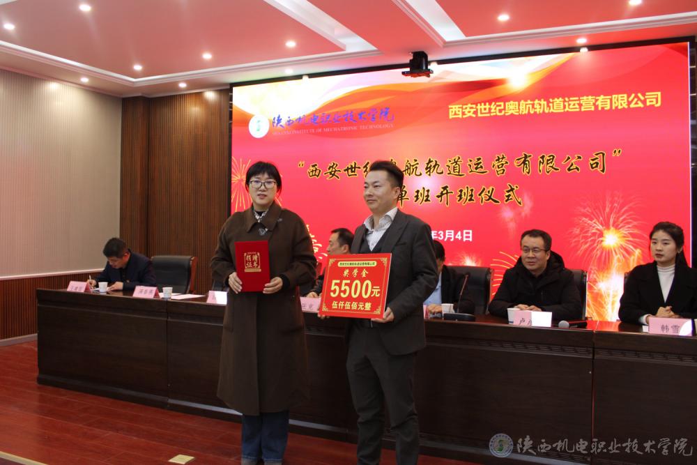 为激励订单班学生努力学习,西安世纪奥航轨道运营有限公司向学校捐赠奖学金,满春燕代表学校向公司授予了捐赠证书。
