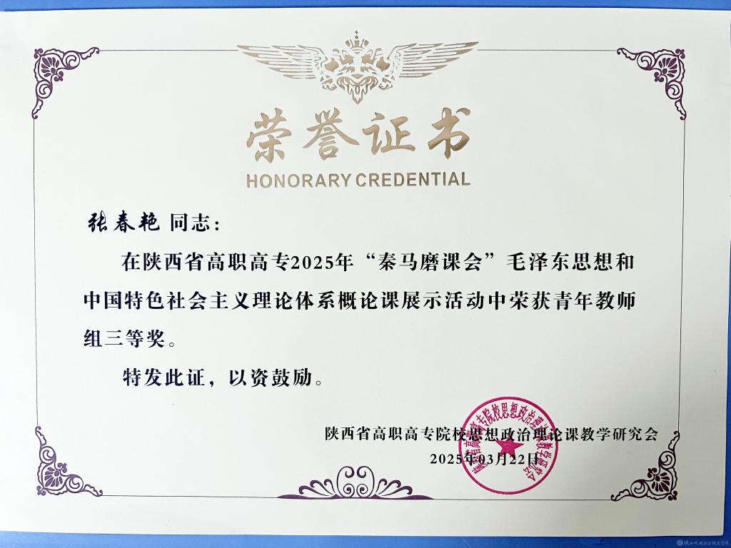为深入贯彻习近平总书记在学校思想政治理论课教师座谈会上的重要讲话精神,落实习近平总书记对学校思政课建设的重要指示精神,搭建全省职业院校交流思政课建设工作经验的重要平台,2025年“秦马磨课会”“毛泽东思想和中国特色社会主义理论体系概论”课程现场教学展示3月22日在汉中职业技术学院举办。买球赛的app官网党委副书记、纪委书记陈红梅受邀参会,并作为颁奖嘉宾为获奖教师颁奖。马克思主义学院概论教研室主任齐晓红,青年教师代表刘晓锐、张春艳、李慧参加活动。
