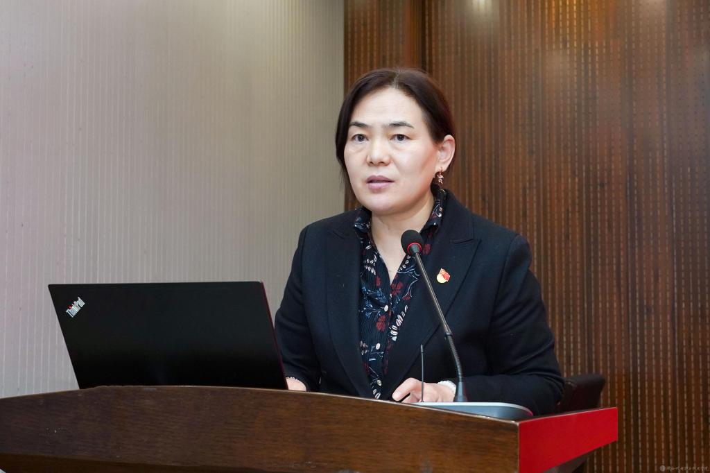 陈红梅领学习近平文化思想。她从思想内涵、核心要义、传承发展等方面系统阐释了深入学习贯彻习近平文化思想的重要价值和意义。她指出,高校是人才培养的高地以及多元文化交流的汇聚之处,要认真学习习近平文化思想,牢牢把握党对意识形态工作的主导权,结合具体工作,通过“大思政”的视角引领意识形态工作新布局。并带领与会人员观看了中共中央党史和文献研究院副院长黄一兵讲解的《如何理解习近平文化思想的丰富内涵?》视频。