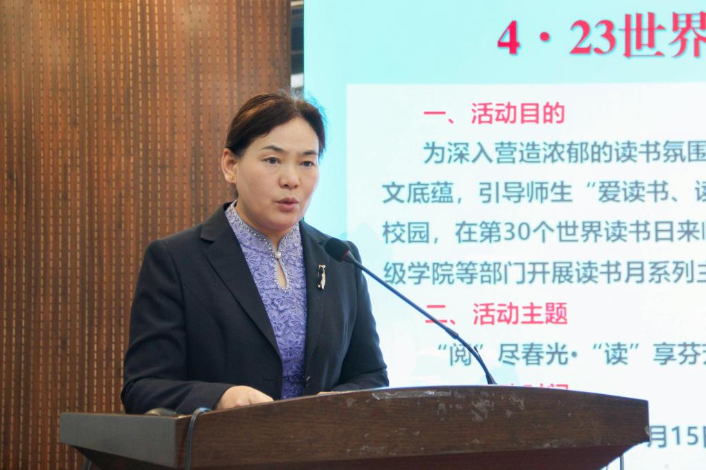 党委副书记张琴代表学校致辞,希望全体师生要以书为友,以读为乐,让书香浸润校园的每个角落。